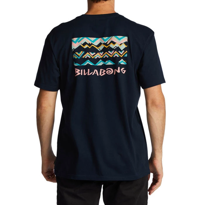 Le logo de la marque Billabong est imprimé en sérigraphie coloré et géométrique sur le devant du t-shirt, ajoutant une touche de personnalité à cette pièce basique.