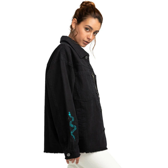 Doté de grandes poches latérales passepoilées ainsi que de deux sur la poitrine, il se distingue par le détail de la magnifique broderie qui orne les manches.