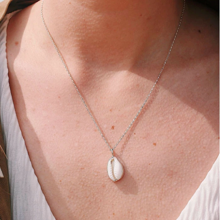 Le collier, est donc fabriqué avec un coquillage, le cauri, qui est considéré comme un porte-bonheur.
