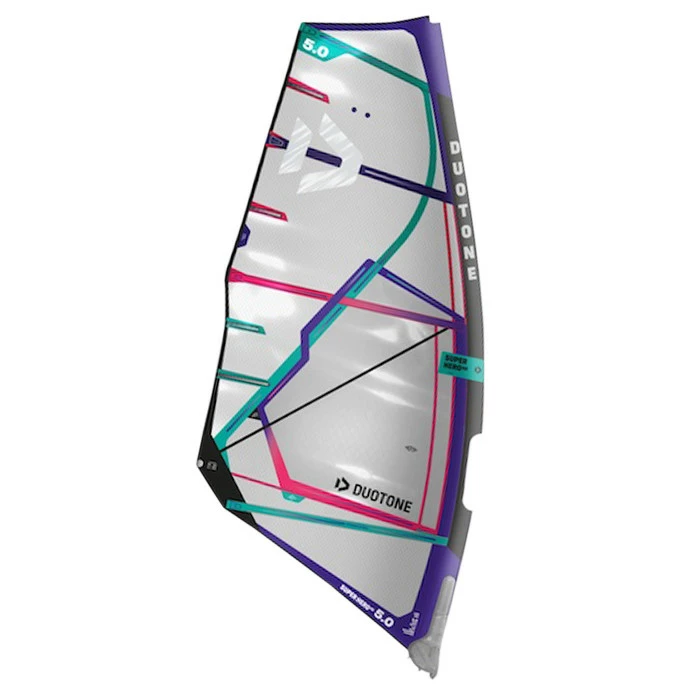 La gamme de voile Super Hero Duotone connait un renouveau en 2021, notamment sur la partie haute de la voile pour regagner en nervosité et sur les surfaces à partir de 5,0, elle reste la référence en terme de contrôle et souplesse avec son centre de poussée bas et centré.