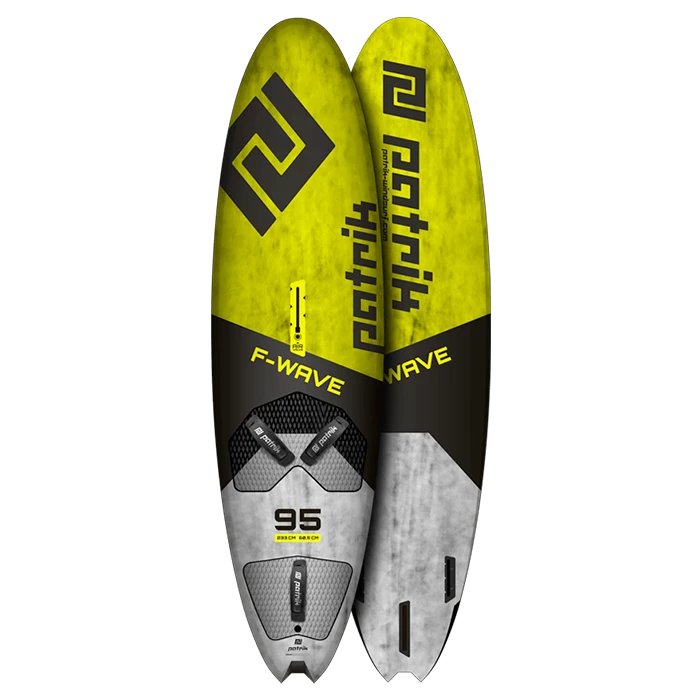 Le bottom shape a été pensé pour obtenir une navigation rapide mais contrôlée, Patrik Windsurf a développé la F-Wave avec un simple concave sous le rail du mât pour se transformer en un double concave V sous les straps des deux petites planches (F-Wave 75 et F-Wave 85). À l’inverse, la F-Wave 95 est équipée d’un double concave V qui traverse tout le bottom de la planche.